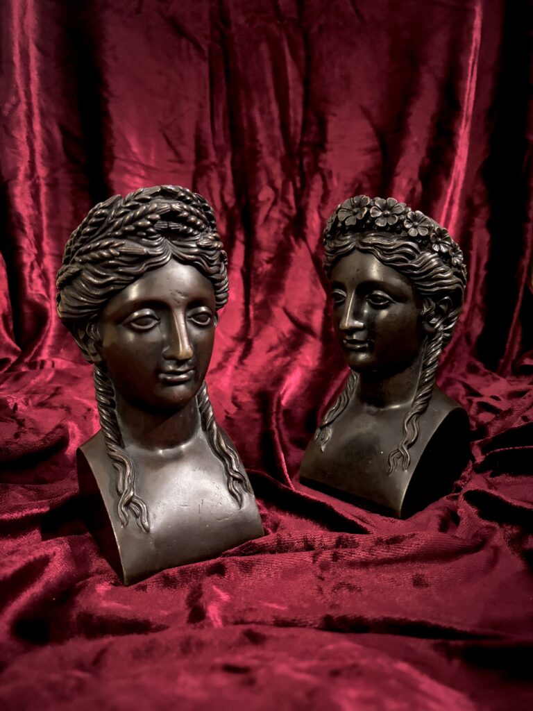 B10 Deux bustes de femme en bronze à l’Antique, époque Empire