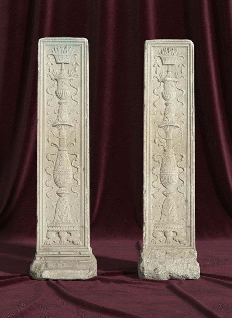 B15 Exceptionnelle paire de pilastres en marbre blanc, Italie XVIe siècle