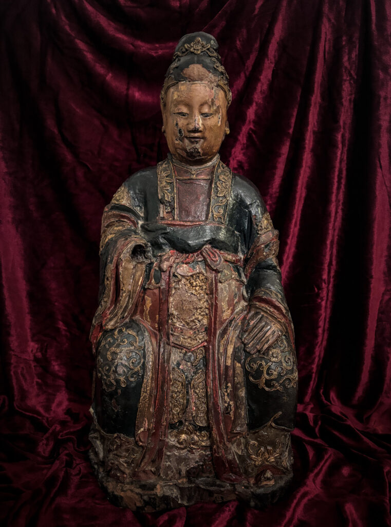 Très rare statue de reine en bois laqué, Vietnam, XVIIIe siècle