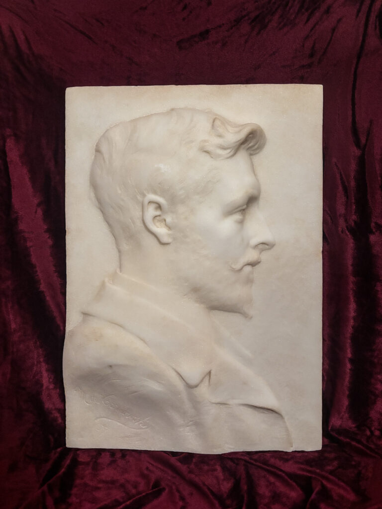 Grand bas relief en marbre – portrait d’homme de profil signé Michel de Tarnowski (1870-1946)