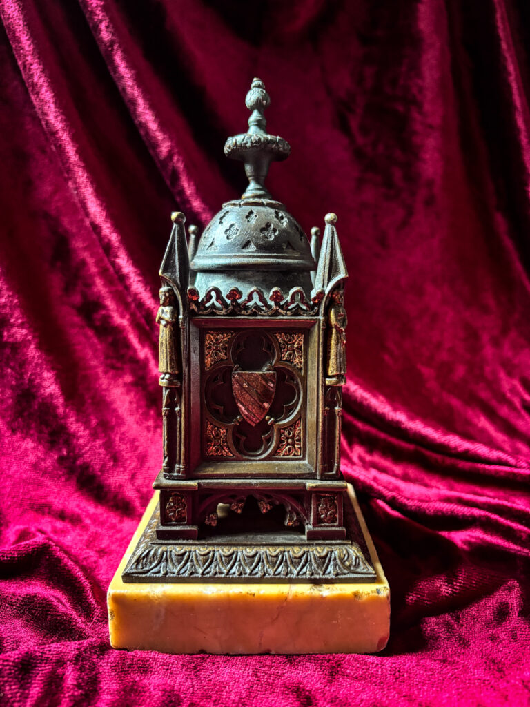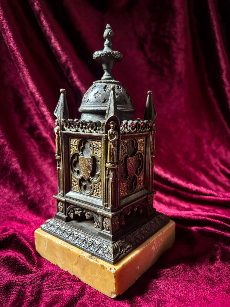 Bronze à patine brune et dorée de style Néogothique figurant un édicule dans le style médiéval.