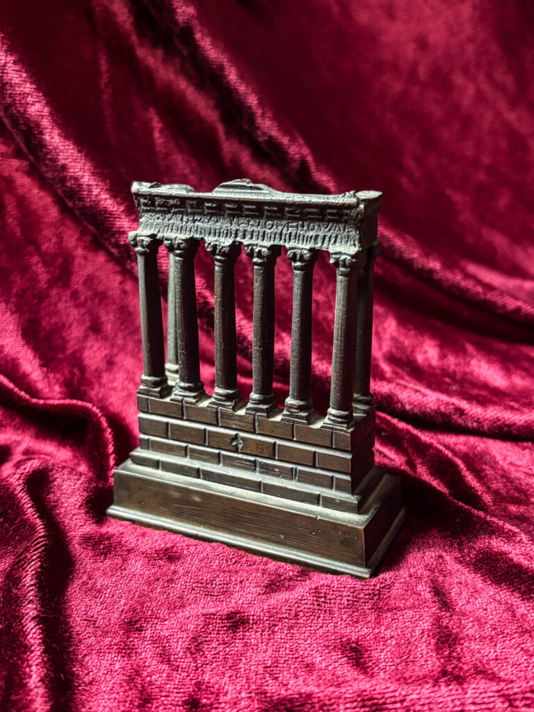 Petit bronze à patine brune du Grand Tour figurant le temple de Saturne à Rome.